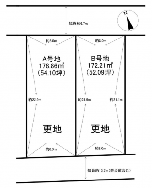 南側 公道13.7m 間口約8m - 土地面積