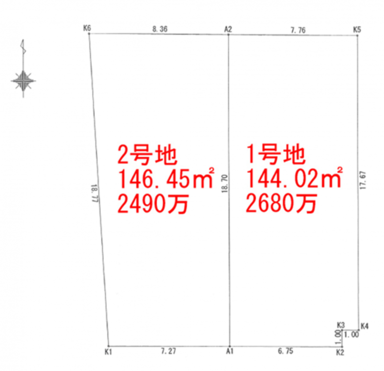 - 南側 公道6.3m 間口約6.7m