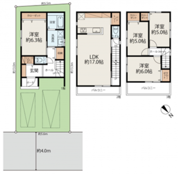 - 北西側 公道4m 間口約5.6m